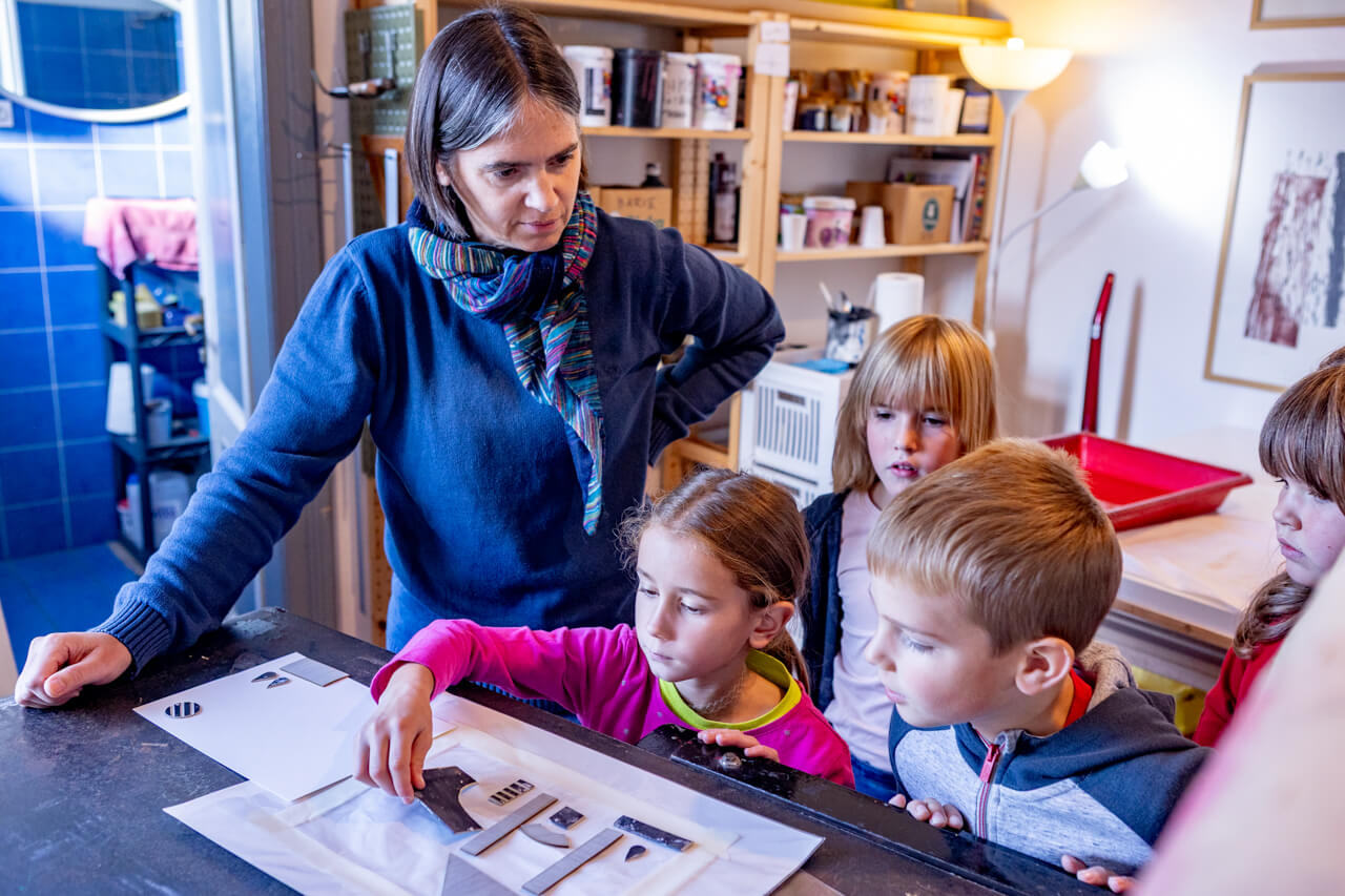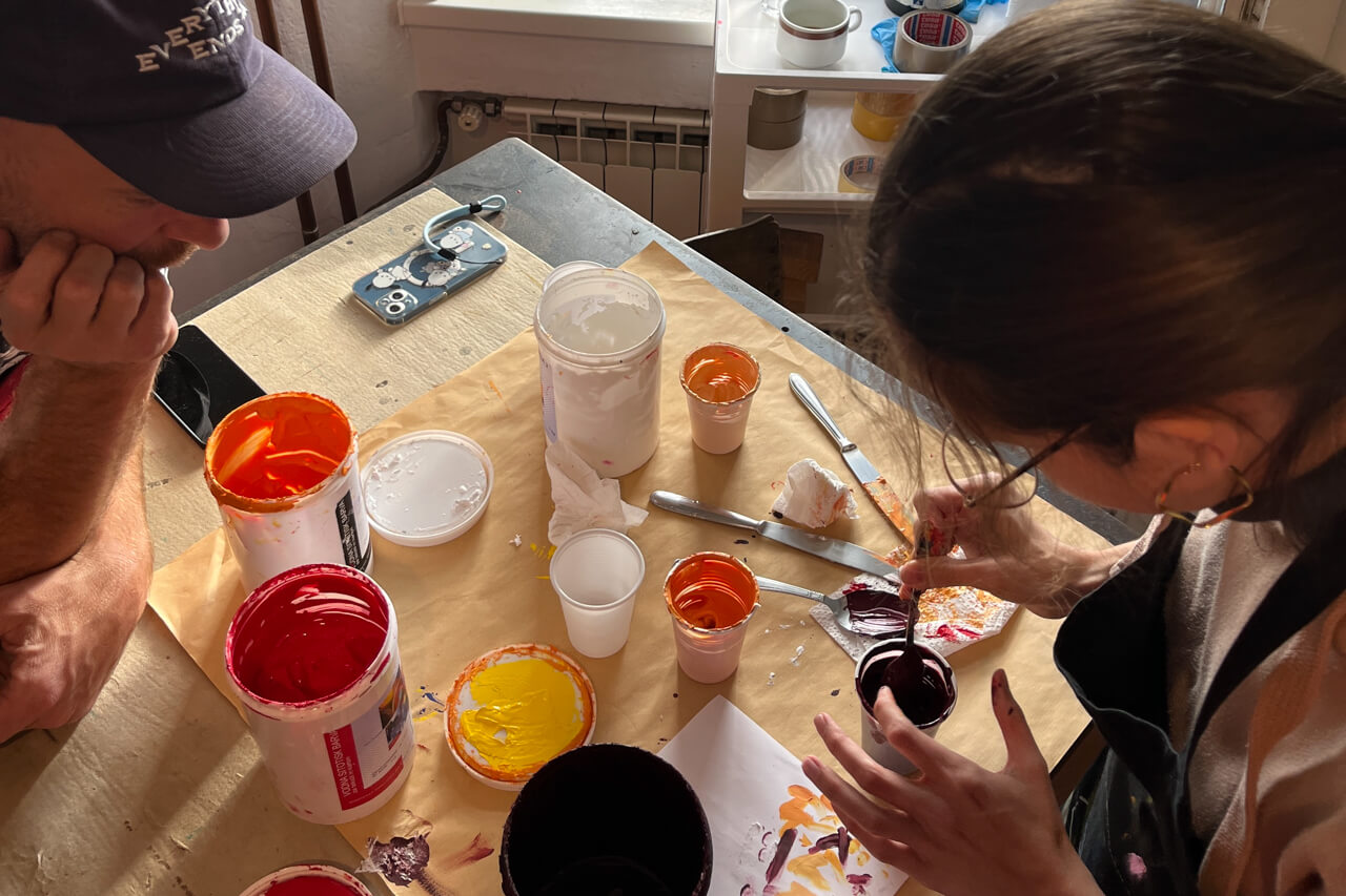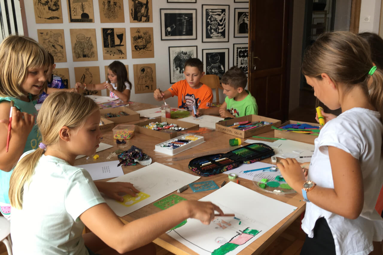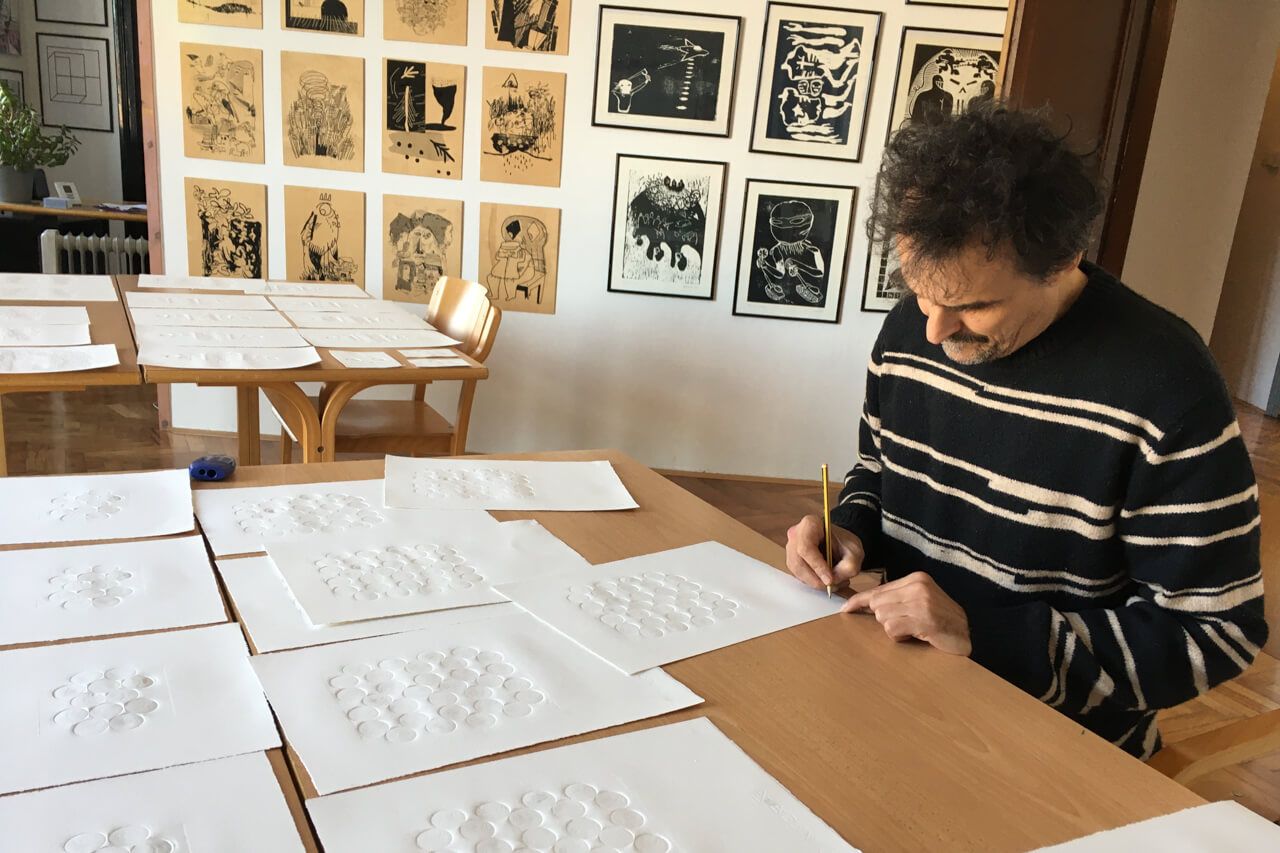 The programme is dedicated to artistic creation in the field of printmaking, mainly in the techniques of screenprinting and relief printing (woodcut, linocut), as well as the production of art publications. The programme takes place in the printmaking studio of Hiša kulture Pivka, which is one of the main strengths and special features of this space. The programme includes the projects ZAPATE – Zine and Print at the Exhibition (2015–), PIVKA 45°40′49.63″N 14°11′46.98″E (2015–2021) and Poems in Prints (2022–2025), the by-product of which become part of the permanent collection of graphic works.